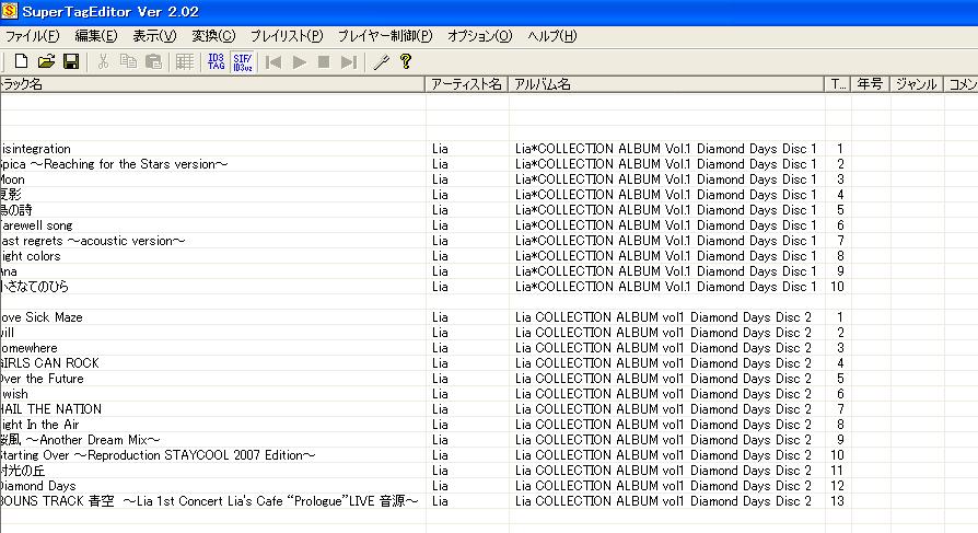 それがいわゆる3日坊主ですな orz ブログなんて自由に書けばいいよねー ってことで今日の出来事 自分のwma整理中の出来事 私はいつもCDを買うor借りた後にwmaファイルに吸い出して その後タグ編集をして管理してるんですが いつもタグ編集を後回しにしちゃうんですよ・・・ で、溜まりに溜まったファイルを整理していていつも悩むんですが アルバム名の場所なんですがDisc2枚組みの場合例えば 「Lia COLLECTION ALBUM Vol.2 Crystal Voice」と1つに纏めるか 「Lia COLLECTION ALBUM Vol.2 Crystal Voice Disc1」と2つに分けるか・・・ 1つに纏めるとプレーヤーで検索する時に纏まってるので綺麗ですが トラックの順番が 01 Birthday Song, Requiem.wma 01 THE FORCE OF LOVE.wma 02 nostalgia.wma 02 Bring Me To Life ~FAIRY LAND Reloaded~.wma とDisc1と2がごちゃ混ぜになってしまいます 2つに分けるとプレーヤーでアルバム名検索する時に Lia COLLECTION ALBUM Vol.2 Crystal Voice Disc1 Lia COLLECTION ALBUM Vol.2 Crystal Voice Disc2 と2つ並んで邪魔くさく表示されてしまいます 並んだら並んだで便利な場合もあるので今は2つに分けていますが・・・ んー どうでもいい話でした^^; PR