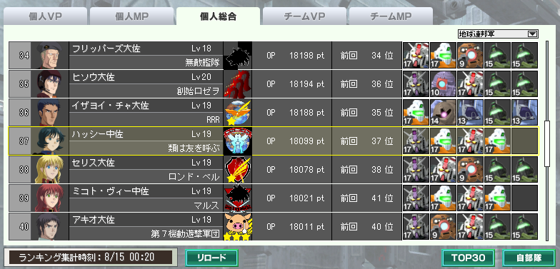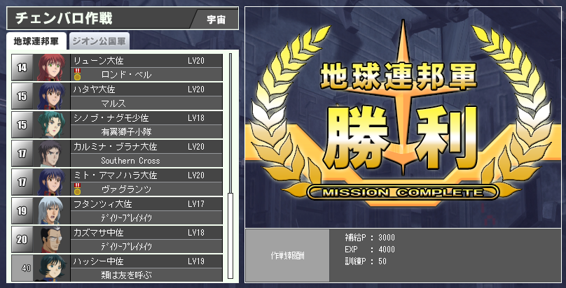 ※大規模任務のためパワードジムを一体ガンダムに交換してます
