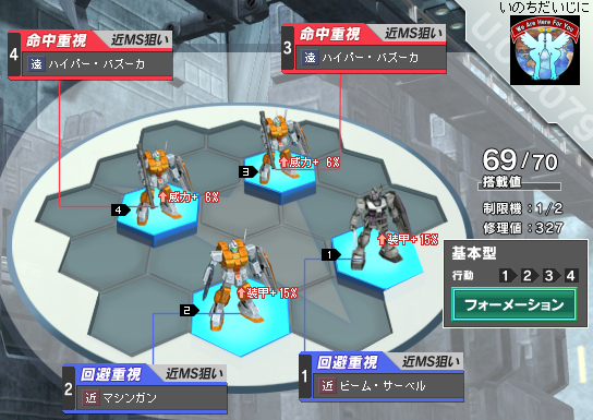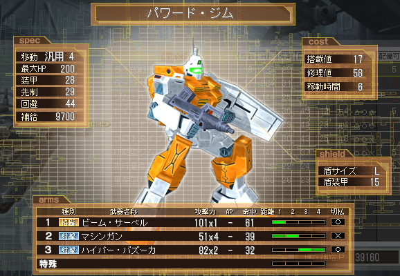 はっし~中佐です 気がつけば中佐。そしてもうすぐ大佐です 3クール目が始まりとうとうZZ、逆シャアシナリオも解禁されテンション上がっていて 上の順位をもりもり目指しているはっし~です で、とうとう発売されました 1,2クール両方お世話になった1年戦争(正式には0083)の名機(?) パワード・ジム 何が凄いのかというと G-3よりも固い装甲! 重そうに見えるがジム・コマンドより軽やかな回避! 珍しい汎用で移動4! 中の下の使いやすい修理値58! こんなに使える機体なのに周りを見れば意外と入れている人は少なめ・・・ 確かにバズーカの命中低いけど・・・ まぁ私はパワジムのポテンシャルを信じていますので 今週はこの編成で行きますよー G-3、パワードジム×3 ん?やりすぎ? PR